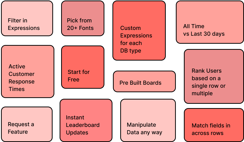 Competiboard helps you effortlessly launch your Custom Leaderboard based on your users to generate healthy competition. Board builder, rewards, backend, db connections, filtering, all done for you
